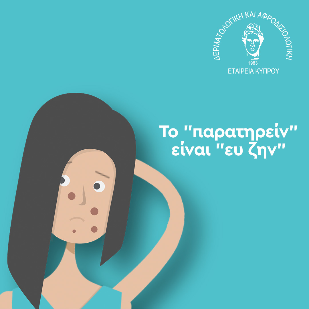 Ενημερώνεσαι για τις αλλαγές που συμβαίνουν στον κόσμο. Τι γίνεται όμως με τις δερματικές αλλαγές που συμβαίνουν στο σώμα σου; Ακολούθησε τη συμβουλή της ΔΑΕΚ και του ΠΙΣ και αν παρατηρήσεις οποιαδήποτε δερματική δυσχρωμία επισκέψου έναν εγκεριμένο από τον ΠΙΣ Δερματολόγο για τη διάγνωση και την αποκλεισμό της πιθανότητας δερματικού καρκίνου πριν τη θεραπεία της δερματικής βλάβης!